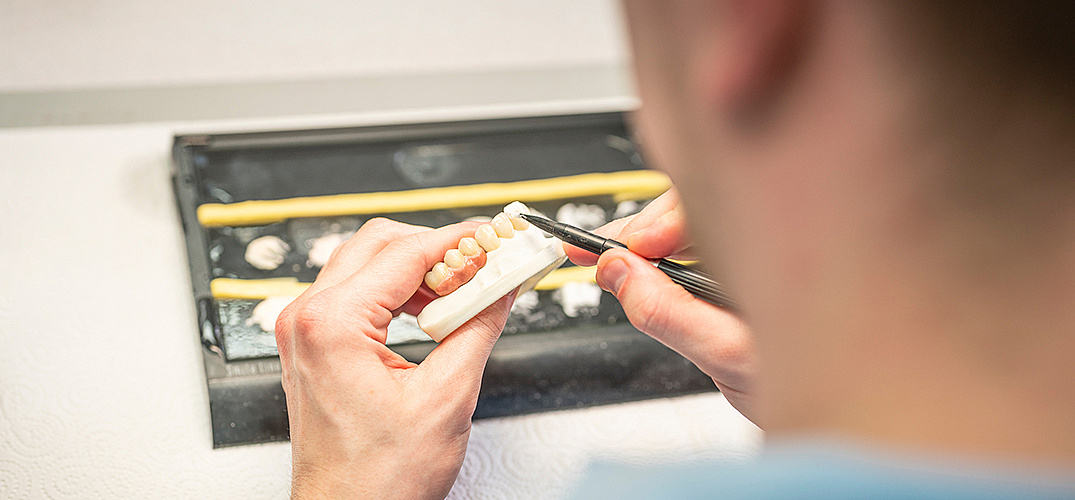 Genauso unkompliziert wie die Prothesenreinigung bieten wir exklusiv einen Reparaturservice für Ihre Prothese an. Unsere Mitarbeiter*innen stehen exklusiv für die Zahnprothesen-Reparatur zur Verfügung, so dass sich Ihre Prothese je nach Art der Beschädigung zeitnah wieder an ihrem Platz im Mund befindet.