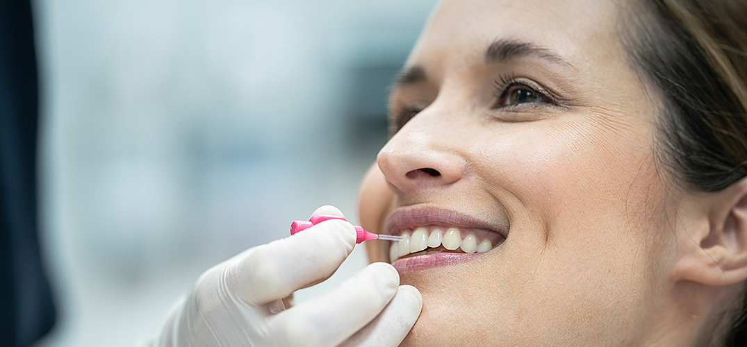Gründliche und regelmäßige Mundhygiene ist ein wesentlicher Bestandteil zur Gesunderhaltung von Zähnen und Zahnfleisch. Und er liegt in Ihren Händen. Zusätzlich zur Zahnpasta mit Fluoriden empfehlen wir Zahnseide sowie bei Bedarf Interdentalbürstchen. Damit erreichen Sie gut die Zahnzwischenräume.